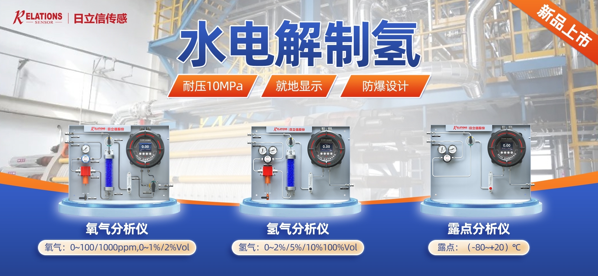 電解水、天然氣、氫分裂制氫,輸氫管道、氫氣置換,制氫站、加氫機、卸氣柱、撬裝站、氫燃料電池汽車及系統(tǒng)測試臺架、熱電聯(lián)供、氫滲氫實驗室、涉氫生產(chǎn)廠房、氫氣氣瓶間等場合中的氫氣濃度、純度、濕度檢測。